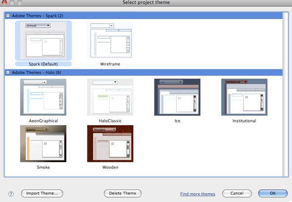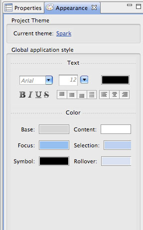 Themes are huge as well – especially after developers like Juan Sanchez of ScaleNine and Degrafa fame brought Flex’s skinning engine the attention it deserved. Though I really don’t like the new default ‘spark’ theme (it seems like we’ve gone back in time to retro computer land) support for the extension, creation and packaging of themes are stronger than ever. Working hand in hand with Flash Catalyst the skins output can be selected with Flash Builder’s new theme browser, with single items still being customizable.