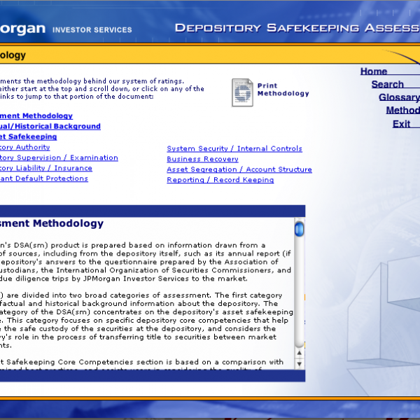 Programmed a cross platform application for Chase Manhattan Bank clients utilizing a searchable database of bank depositories, allowing one to view search results based on various ratings criteria.