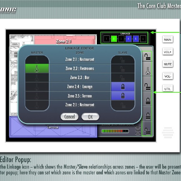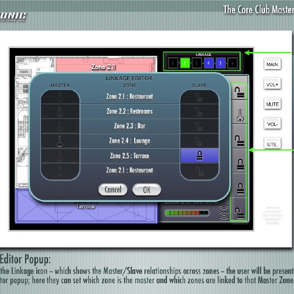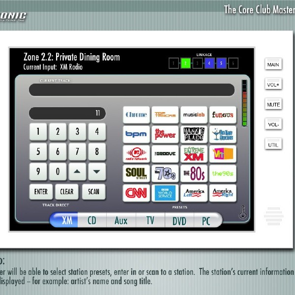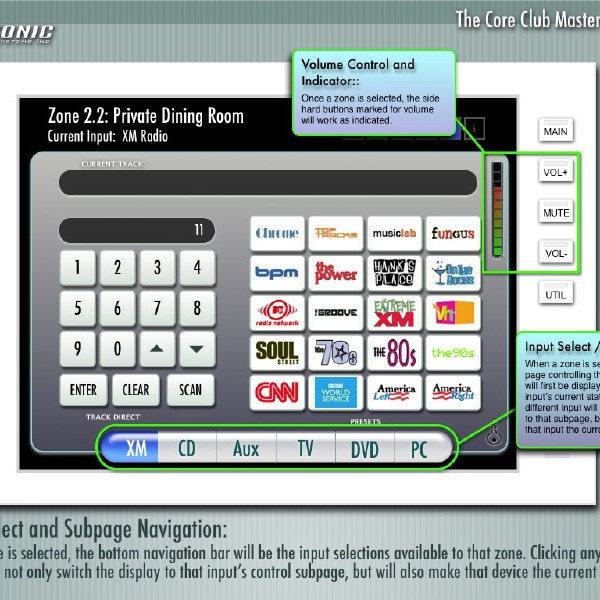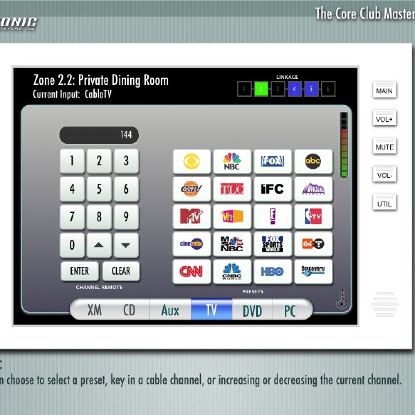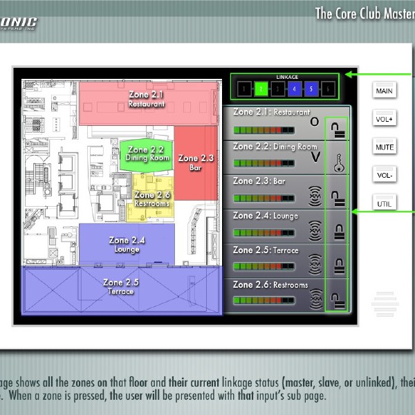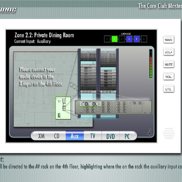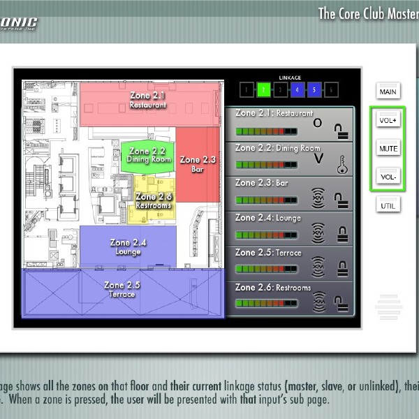 The Core Club is a premiere fitness and dining club located in Manhattan. The audio experience throughout the six floors of the club can be controlled by any of the interactive touchpanels on any floor, as well as a web interface.